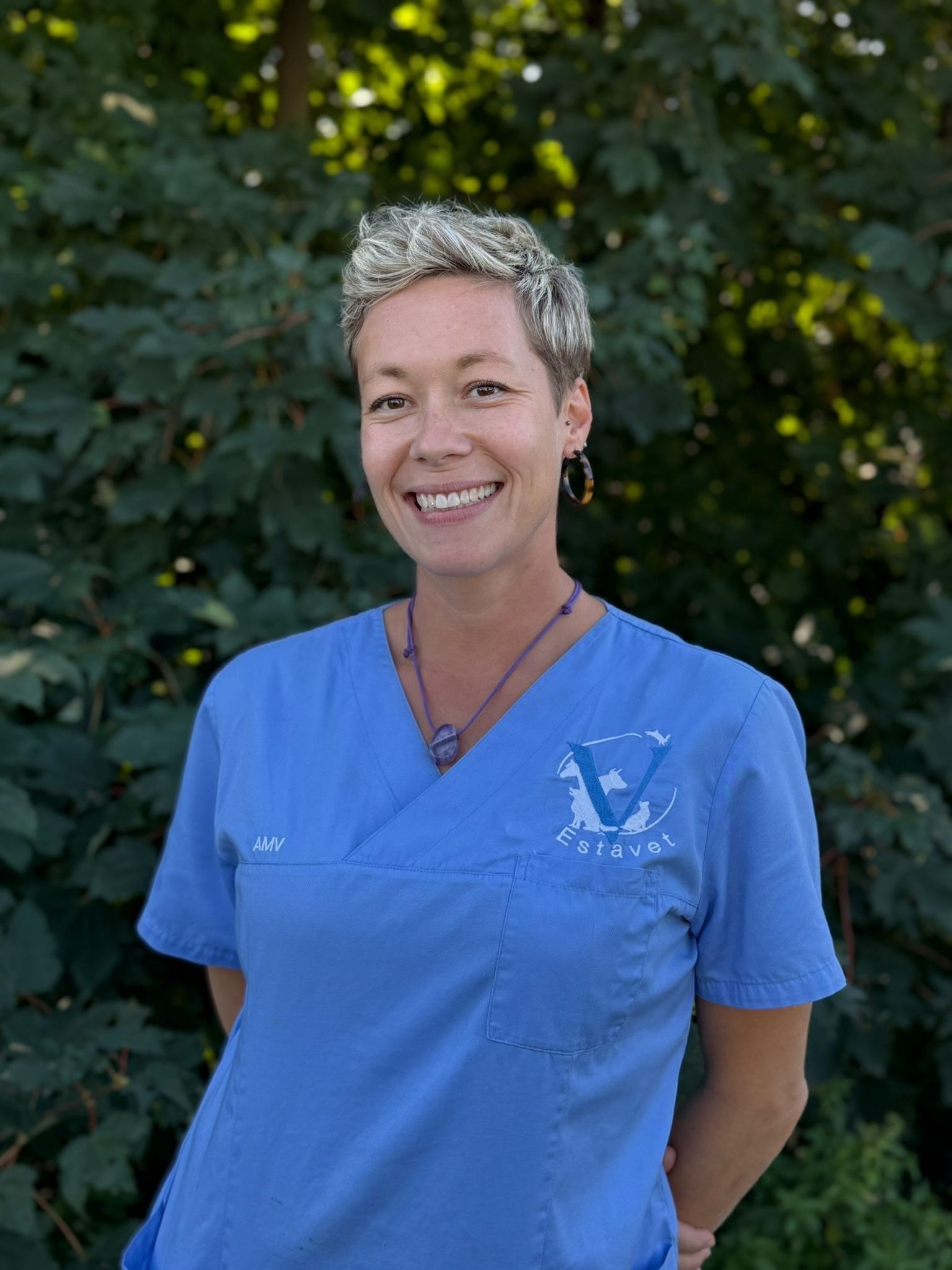 Elle s'est ensuite consacrée exclusivement à la médecine sur les petits animaux, jusqu'en 2020 où elle intègre le Cabinet Vétérinaire Estavet, avant de le reprendre avec le Dr Simon.